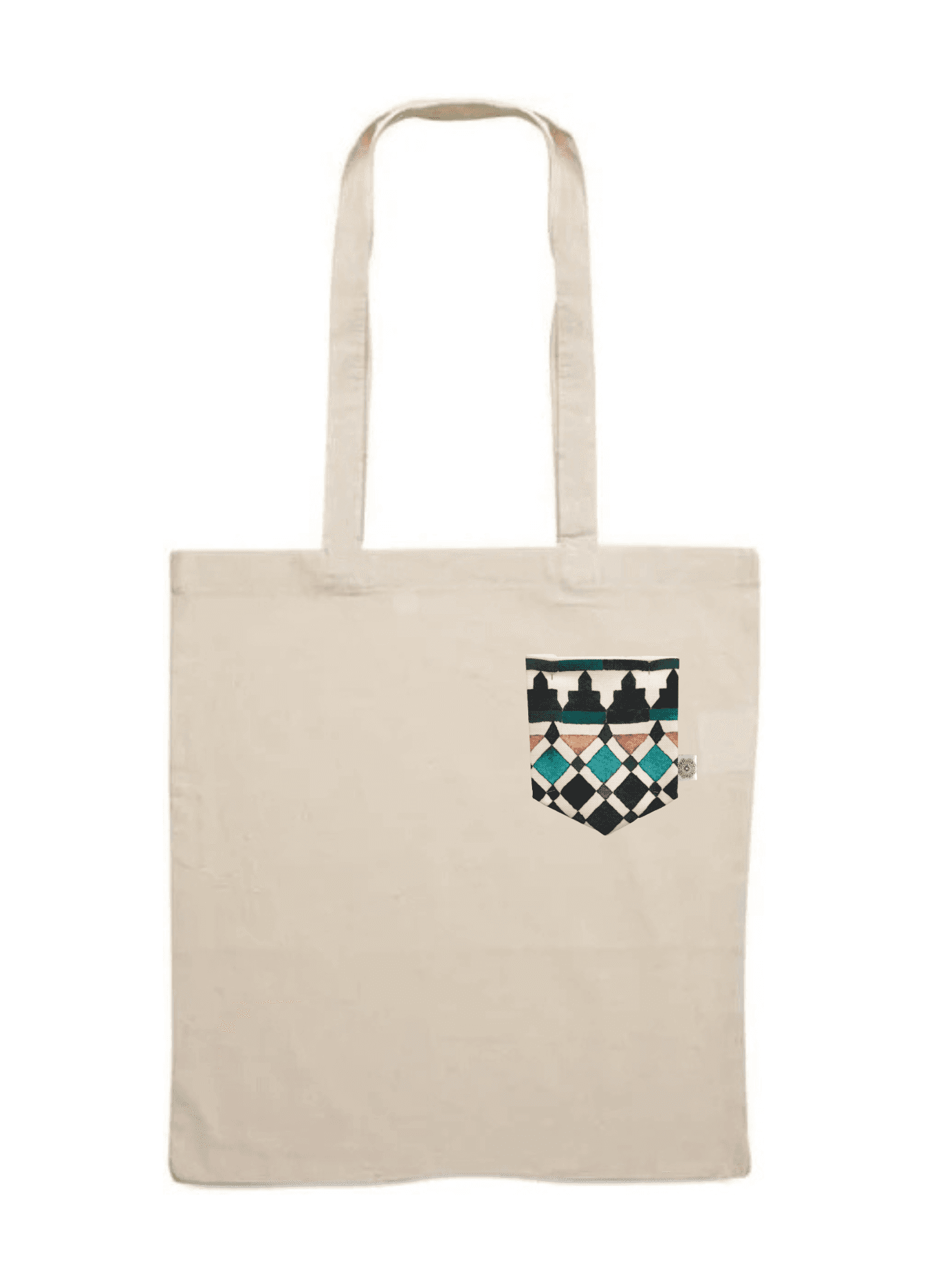 Compuesta por algodón canvas (tejido grueso de algodón natural, también denominado loneta) de 300 g/m2 y dimensiones 38×43+8 cm, con bolsillo interior. Asas de 60 cm para colgar al hombro. Ecológicas, resistentes y reutilizables.